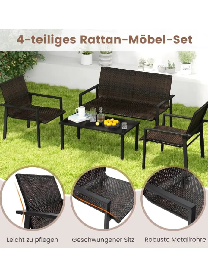 Dieses hochwertige Terrassenmöbelset aus Rattan ist die perfekte Wahl für Ihre Entspannung im Freien.