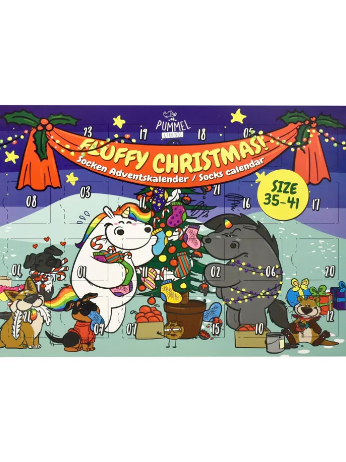 Erlebe die Vorfreude auf Weihnachten mit dem Pummel & Friends Socken Adventskalender für Damen in der Größe 35-41. Dieser einzigartige Adventskalender ist das perfekte Geschenk für alle Pummeleinhorn-Fans und bringt jeden Tag eine neue Überraschung in die Vorweihnachtszeit. Hinter den 24 liebevoll gestalteten Türchen verbirgt sich jeweils eine hochwertige Socke, die mit einem Pummeleinhorn, Grummeleinhorn, Zebrasus usw. Motiv verziert ist. Diese Socken sind nicht nur stilvoll, sondern auch kuschelig warm – ideal für die kalten Wintertage.