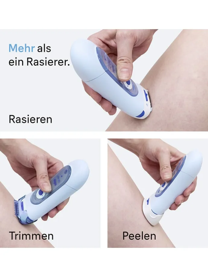 – 3in1-Funktionen: elektrischer Rasierer, Trimmer- und Peeling-System