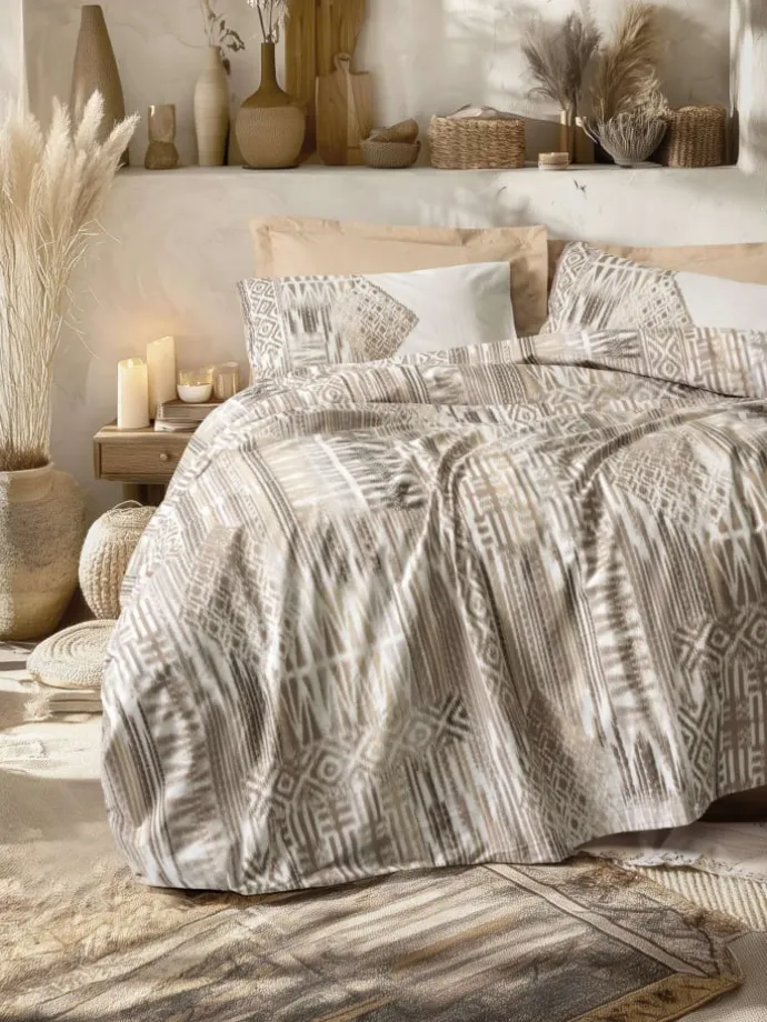 Renforcé-Bettwäsche-Set „Amara“ in Hellbraun/ Weiß