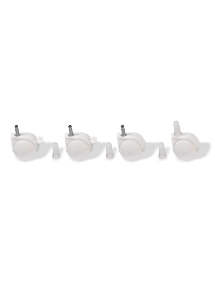 Rollensatz mit Hülsen, weiß: Mit den Rollen für Kinderbetten und Wiegen zauberat du im Nu ein mobiles Möbelstück. Die 4 weißen Schwenkrollen, davon 2 mit Bremsfunktion, sind schnell angebracht und für textile Böden wunderbar geeignet. Die mitgelieferten Hülsen eignen sich für Bohrungen im Holz mit einem Durchmesser von 10 mm. Hochwertige Pinolino Qualität; Material: Kunststoff, weiß; Maße Rolle: D 46 mm; Lieferumfang: 4 Schwenkrollen, keine Montage erforderlich; passend für viele Kinderbetten und Wiegen. Pinolino erfüllt seit 1997 Kinderträume und vertreibt Kindermöbel und Spielwaren. Das deutsche Unternehmen verwendet ausschließlich für Kinder geeignete Lacke, Lasuren und Öle.