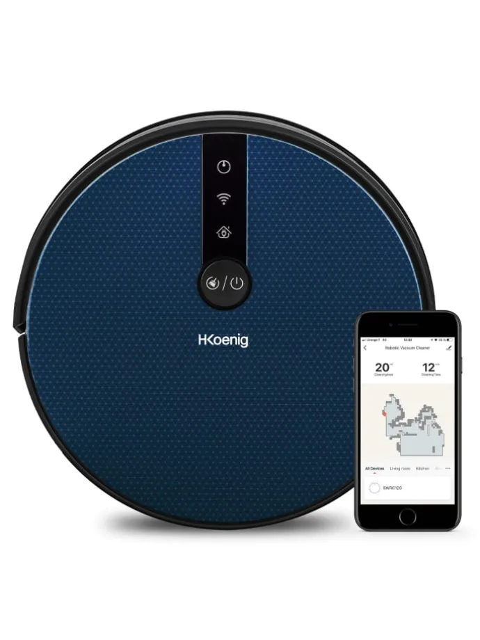 Der Saugroboter WaterMop Gyro + SWRC120 von H.Koenig kümmert sich ab sofort um eine effiziente Bodenreinigung dank seiner Saug- und Wischfunktion! Der WaterMop ist mit Google Home und Alexa kompatibel und wird über die Wifi-Funktion aktiviert. Über dei App TuyaSmart können Sie dann ganz einfach zwischen mehreren Reinigungsprogrammen wählen und können diese ferngesteuert ausführen. Ausgestattet mit einer gyroskopischer Führungstechnik, erfasst der Staubsaugerroboter Ihr Zuhause und wählt seine Route für eine systematische Reinigung Ihrer Räume. Dank seines 350-ml-Wassertanks und seines saugfähigen Mikrofasertuchs saugt und reinigt er alle Arten von Böden. Mit Hilfe seiner Sensoren lokalisiert er sämtliche Ablagerungen, zirkuliert leicht zwischen den Möbeln, weicht Hindernissen aus und gelangt leicht in jeden Winkel und jede Ritze. Mit seiner hohen Saugleistung, 100 Minuten Autonomie und dem Doppelbürstensystem reinigt der SWRC120 zuverlässig und effizient. Der Roboterstaubsauger ist mit einem Hochleistungs-HEPA-Filter für eine bessere Filterqualität ausgestattet. Der Roboterstaubsauger SWRC120 wird Ihr Leben vereinfachen!