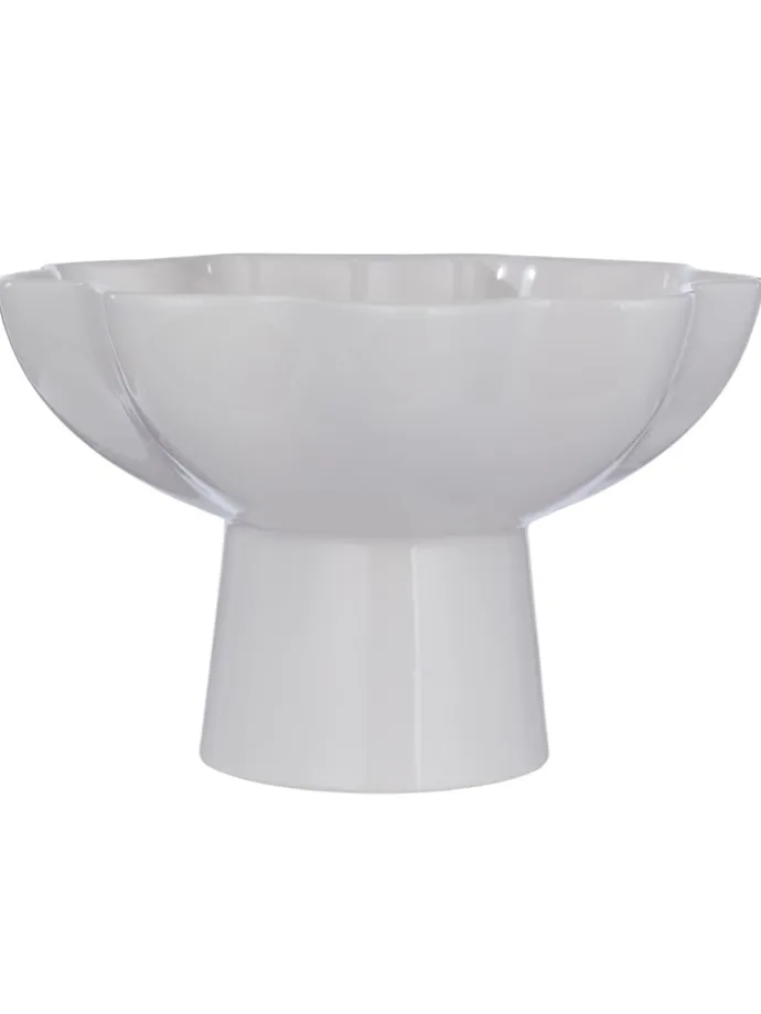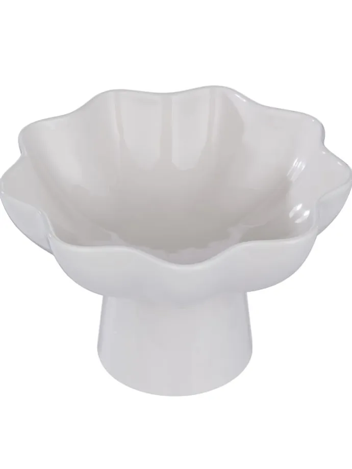 Hell und gewellt: Die Louise Schale mit Fuß in Creme erweist sich als zeitloser und verspielter Allrounder zum Dekorieren, Servieren und Tisch decken. So kannst du die Schale aus Steinzeug z.B. mit Gebäck auf der Kaffeetafel oder pur als Blickfang auf einem Beistelltisch platzieren.