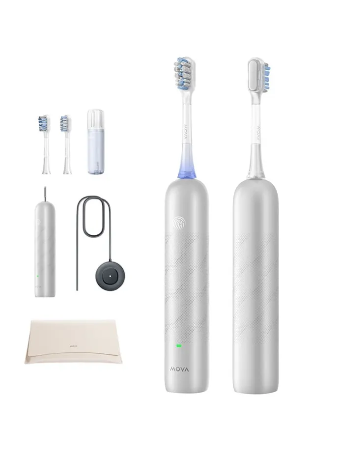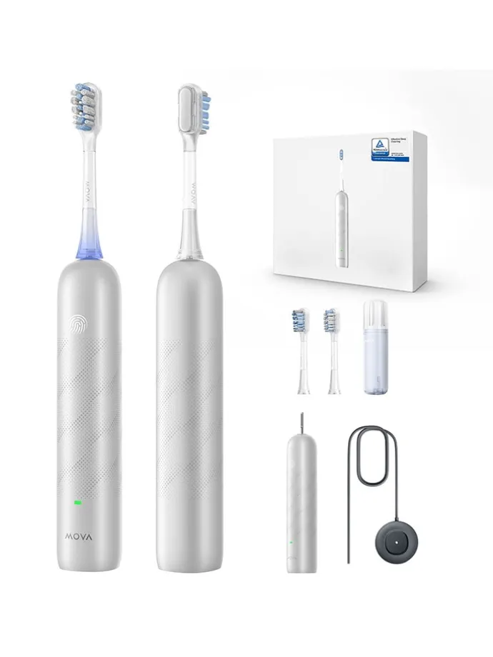 1x elektrischer Zahnbürstengriff, 1x kabelloses Ladegerät (einschließlich Kabel), 1x Reiseetui