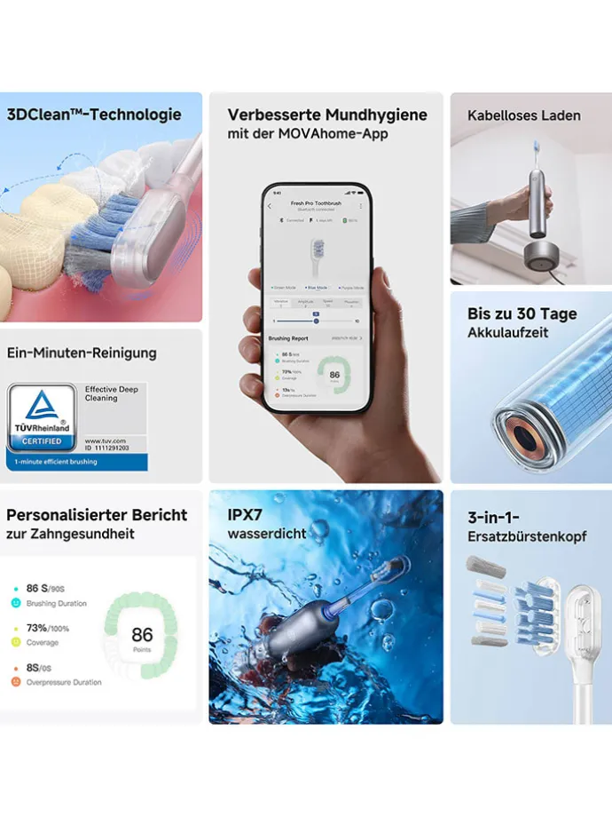 – App- und Bluetooth-fähig: ermöglicht die Anpassung der Vibrationsfrequenz und Kontrolle des persönlichen Putzverhaltens