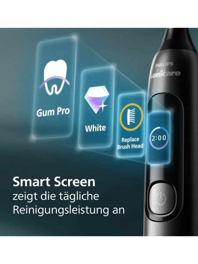 – intelligenter Bildschirm für sofortige Leistungsüberprüfung beim Zähneputzen