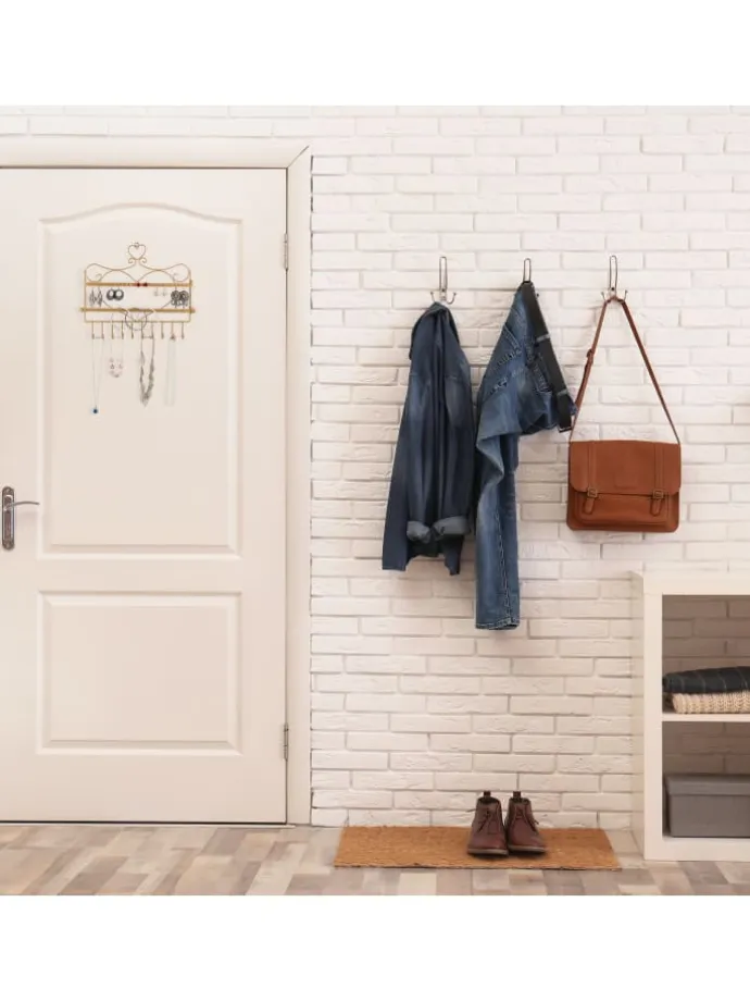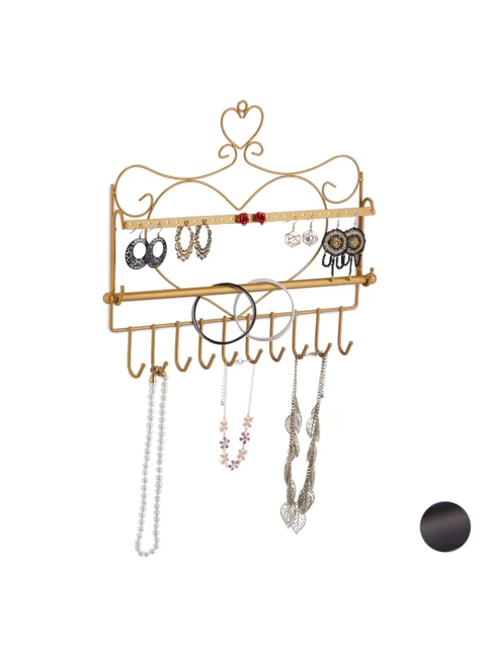 Mit diesem Schmuckhalter bewahren Sie Ihren Schmuck übersichtlich und geordnet auf. Der Schmuckorganizer bietet Platz für Ohrringe und -stecker, Armbänder, Uhren und Halsketten. Da die Schmuckleiste an die Wand montiert wird, lassen sich auch lange Halsketten problemlos aufhängen und sind vor Verheddern geschützt. Dank der romantischen Vintage-Optik ist der Ohrringhalter zudem ein echter Hingucker und eine stylische Präsentationsmöglichkeit für Ihren Lieblingsschmuck.
