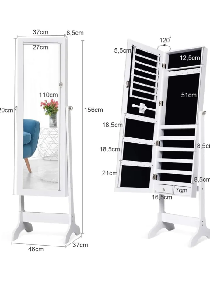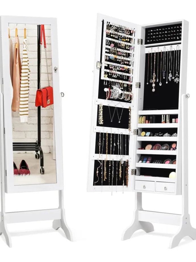 Unsere Stehschmuckschränke können alle Ihre Kosmetika, Schmuckstücke oder andere Kleinigkeiten aufbewahren und organisieren.
