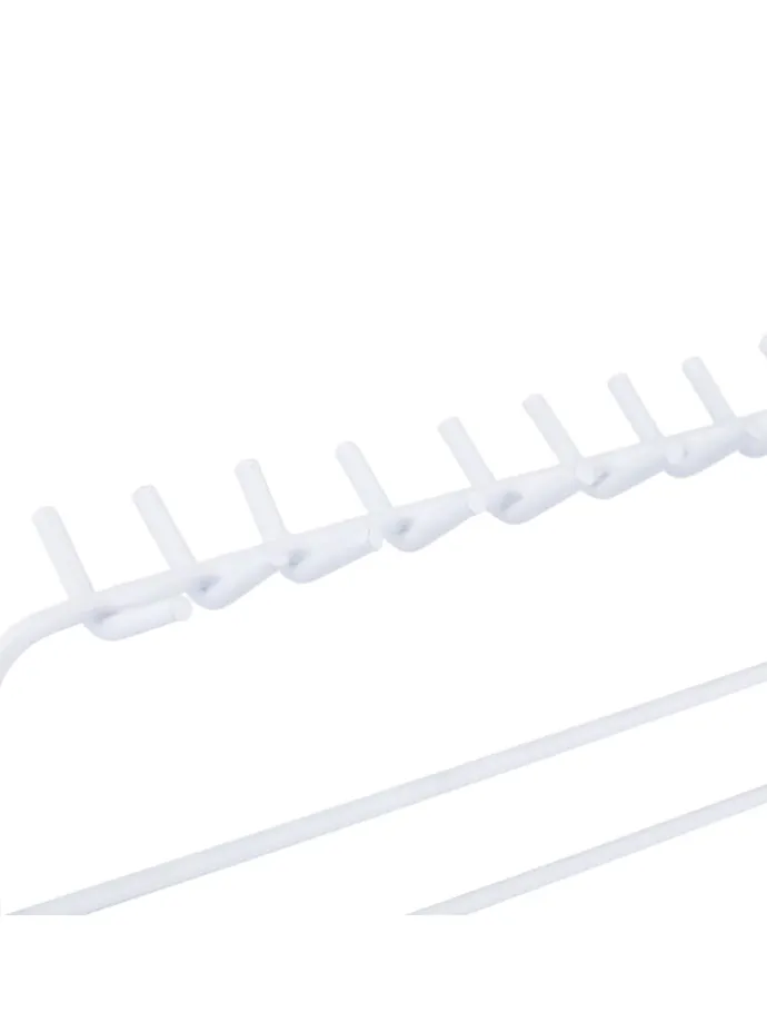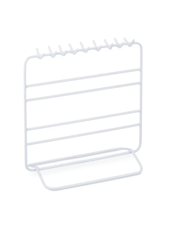 Im Bad liegt alles voller Schmuck, die Ketten sind verheddert und Sie können Ihre Lieblingsohrringe nicht finden? Dieser Schmuckständer ist die Lösung! Auf 18 Haken ist Platz für Ihre Ketten, Ringe und Armbänder und die 4 Querstangen sind ideal für die Aufbewahrung von Ohrhängern und Armbändern mit Verschluss. Doch auch Uhren oder Sonnenbrillen sind gut auf dem Schmuckhalter aufbewahrt. Durch das schlichte Design steht Ihr Schmuck im Mittelpunkt und der Kettenständer passt in jede Einrichtung.