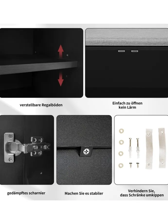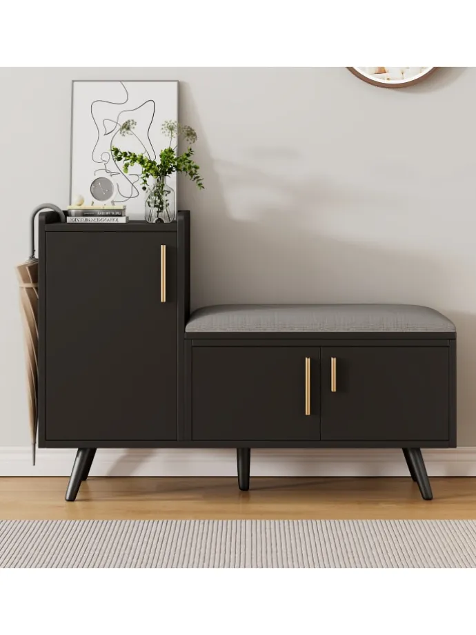 Dieser elegante Sitzschrank kombiniert klare Linien mit vielseitigem Stauraum und bequemer Polsterung – ideal für Flur, Schlafzimmer oder Wohnzimmer. Eine praktische Lösung für mehr Ordnung und Komfort im Alltag.
