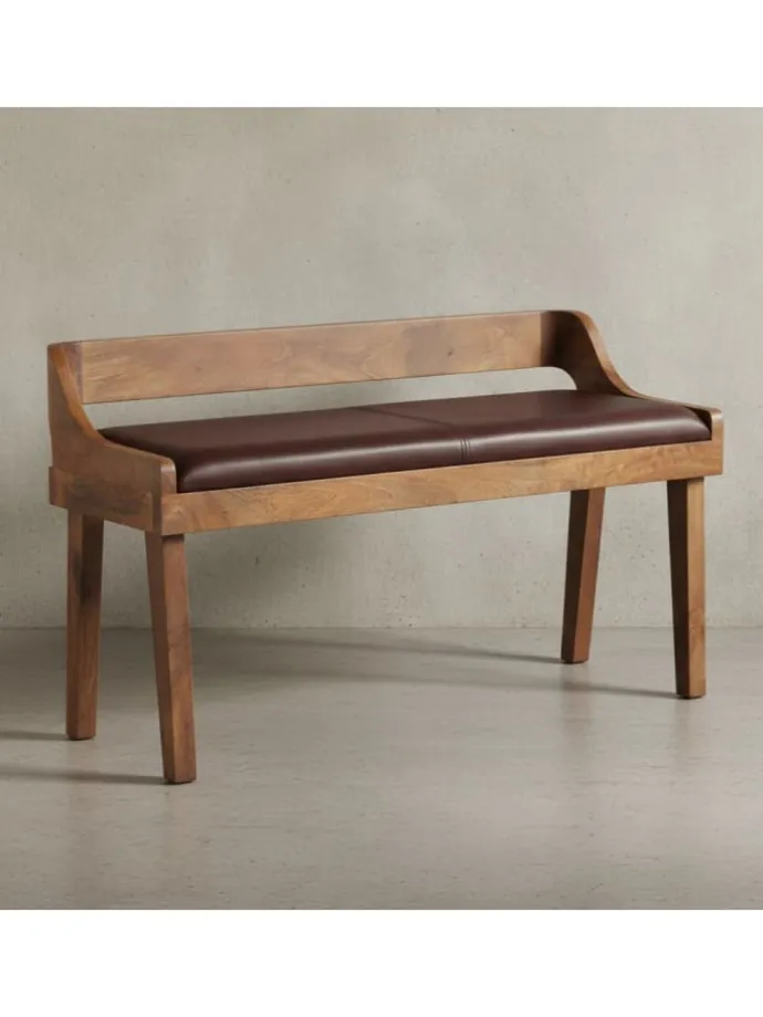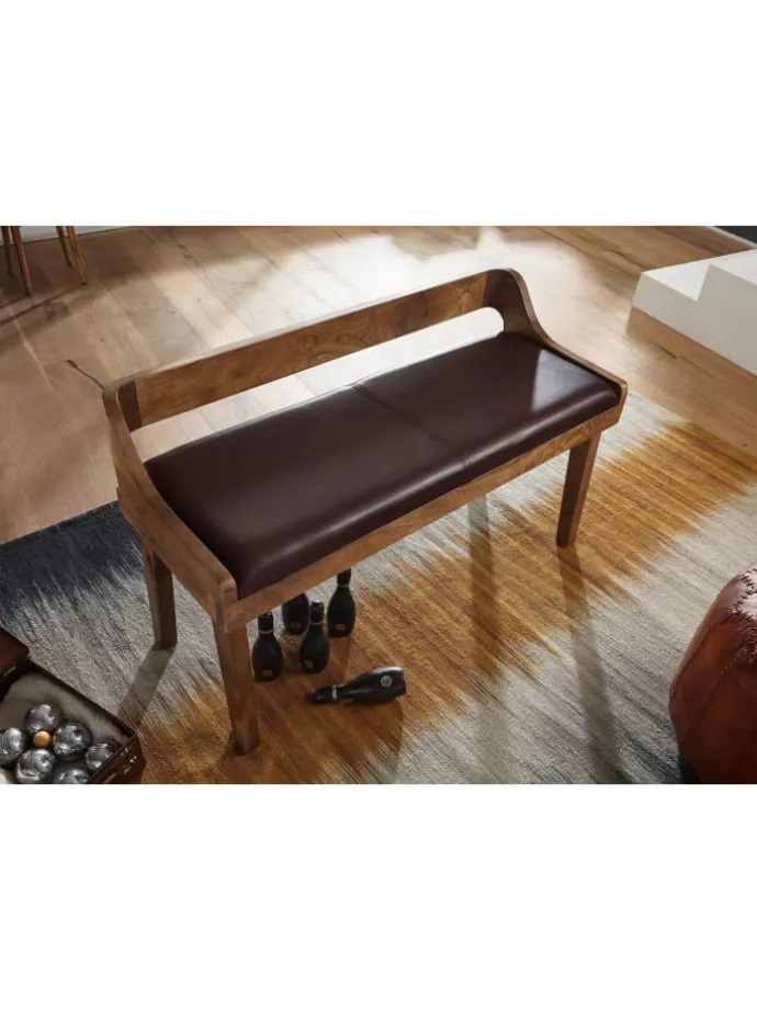 Moderne Sitzbank aus hochwertigem Echtleder und Massivholz für angenehmes und stilvolles Sitzen.