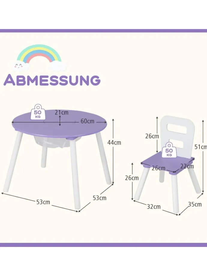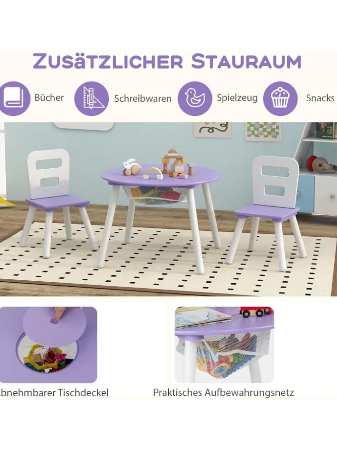 Komplettes Set aus Tisch und 2 Stühlen ist ein ideales Geschenk für Kinder