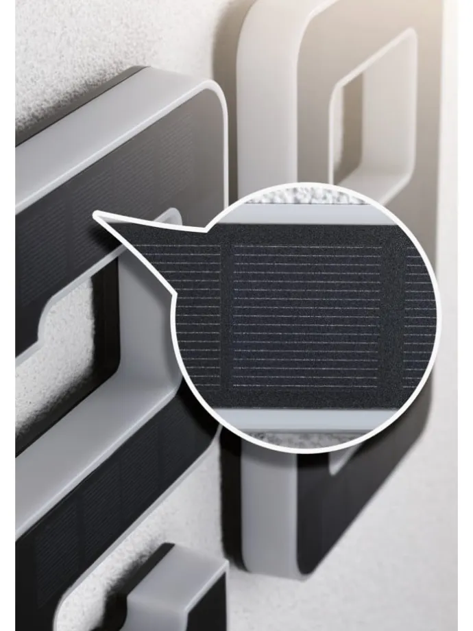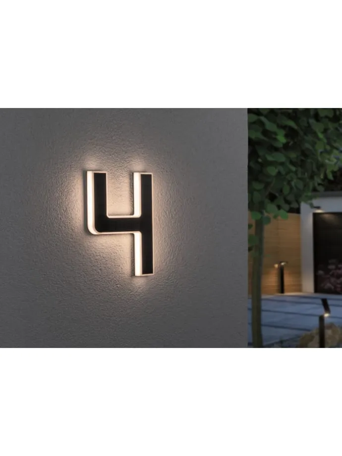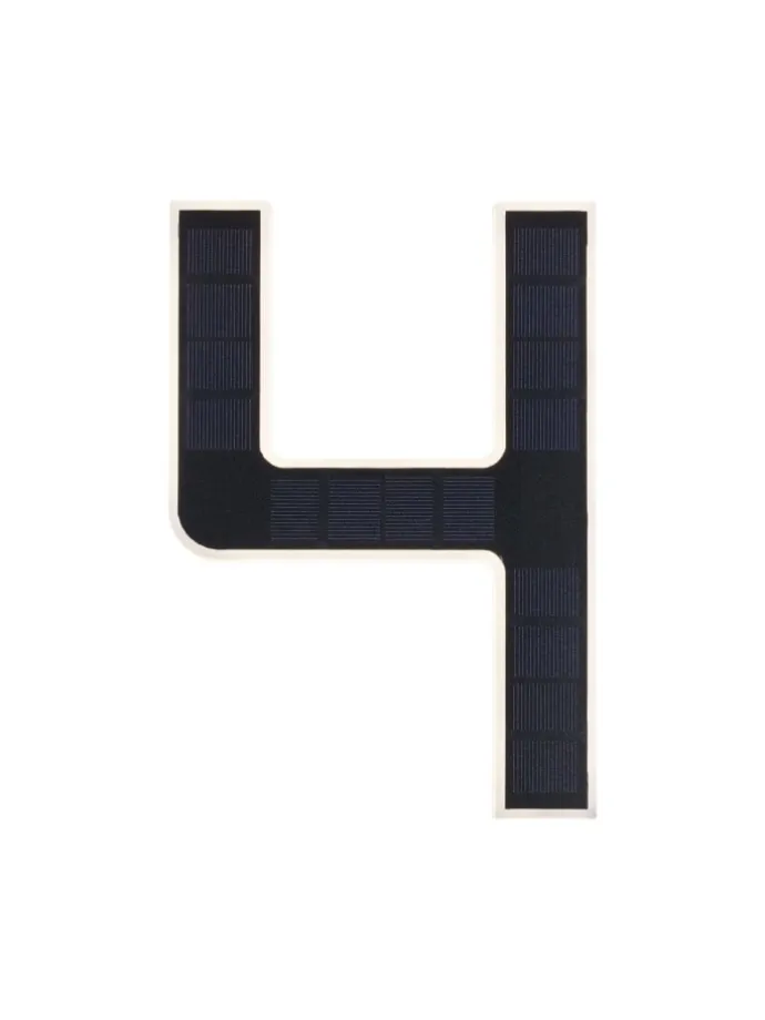 Die leuchtende Nummer 4 ist für sich allein oder mit weiteren Ziffern die perfekte Hausnummernleuchte. Dank Solarbetrieb kann sie ganz unabhängig von Stromauslass an der Hauswand befestigt werden. Tagsüber wird das unsichtbare Solarpanel vom Sonnenlicht aufgeladen, bei Nacht wird die dekorative Nummer indirekt beleuchtet.