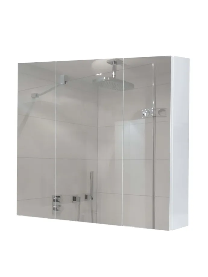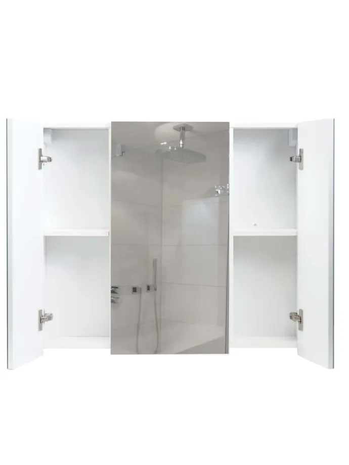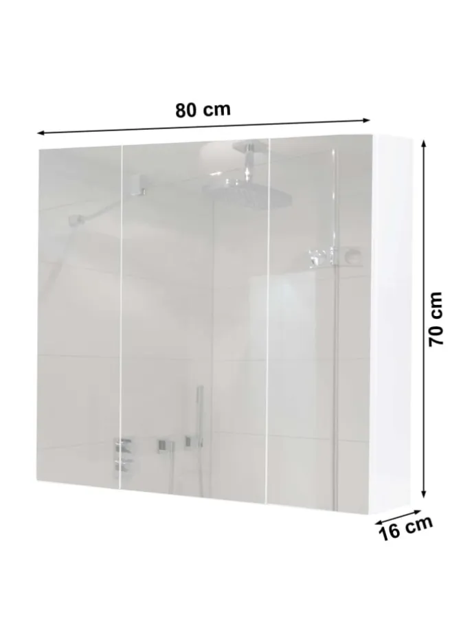 – Dieser schicke Spiegelschrank im modernen Design ist in jedem Badezimmer ein echter Hingucker. Zudem wurde der Schrank mit einer PU-Lackierung behandelt, welches das Holz strapazierfähig, wasserfest und witterungsbeständig macht.