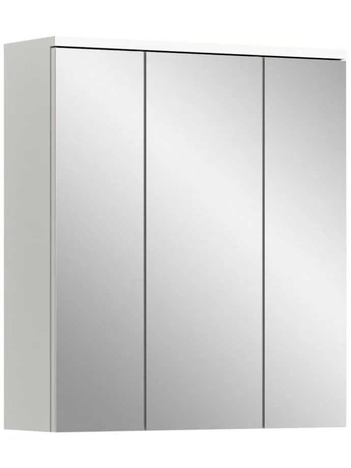 Der elegante Spiegelschrank (B/H/T: 63x73x21 cm) überzeugt durch modernes Design und praktische Funktionalität. Die Hochglanz-Front in Weiß verleiht dem Möbelstück eine stilvolle Optik, während die drei Spiegeltüren den Raum optisch vergrößern und für zusätzliche Helligkeit sorgen. Mit sechs variablen Einlegeböden bietet der Spiegelschrank ausreichend Platz für die ordentliche Aufbewahrung von Badutensilien. Die Türen sind mit einer Softclose-Funktion ausgestattet, die ein leises und sanftes Schließen garantiert. Gefertigt aus FSC®-zertifiziertem Holzwerkstoff steht der Schrank für nachhaltige und umweltbewusste Produktion. Dieses Möbelstück ist die perfekte Kombination aus Design, Funktionalität und Nachhaltigkeit für jedes moderne Badezimmer.