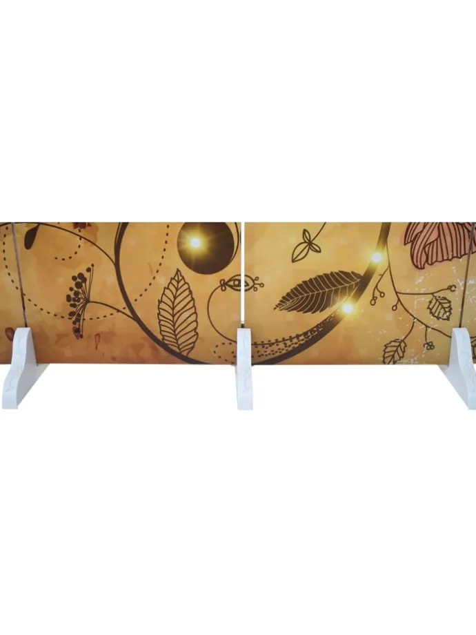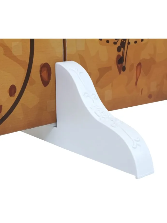 Um Ihre Trennwand in voller Pracht und Breite zur Geltung zu bringen, bieten wir daher eine besonders schmucke Lösung: weiße Standfüße mit Ornament-Struktur. Ganz einfach zwischen die einzelnen Abteile platziert, geben sie dem Paravent nicht nur ausreichend Stabilität um gerade zu stehen, sondern versetzen den Paravent auch in ein „“standesgemäßes““ Gesamtbild. Sie haben auch die Möglichkeit die Standfüße an Ihrem Paravent festzuschrauben, dank speziell vorgebohrter Löcher in der Mitte der Füße.