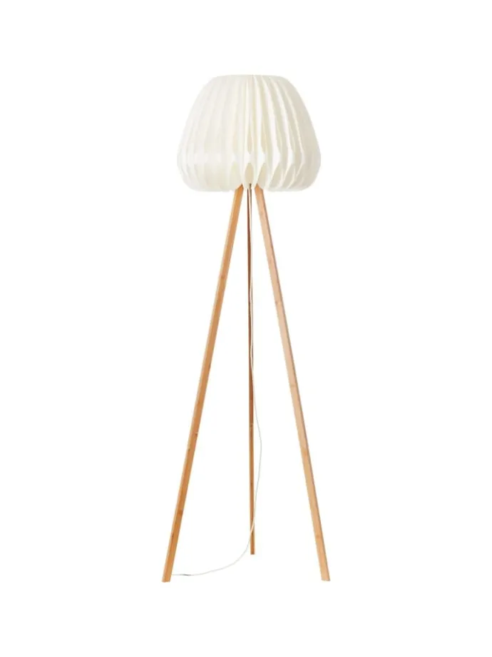 Die 1-flammige Stehleuchte Inna besitzt alles, was es zu einem modernen Hingucker braucht. Stilvolle Elemente aus echtem Bambus und weißem Kunststoff runden das Gesamtbild der Lampe exzellent ab. Wir verbinden dabei exquisites Design mit innovativer und sparsamer Technik. Dank des nachwachsenden Bambusholzes ist unsere Standleuchte Inna besonders nachhaltig.