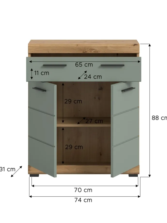 Standschrank in Artisan Eiche/Salbei – (B) 74 x (H) 88 x (T) 31