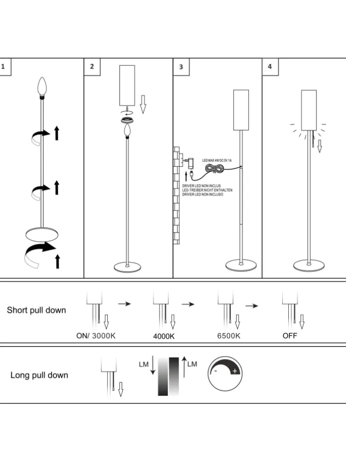 [Praktische Größe und Gewicht] Mit einer Höhe von 151cm, einem Lampenschirmdurchmesser von 10,5cm und einer Basisdurchmesser von 16cm und USB-Kabellänge 170cm, ist diese Standleuchte leicht zu platzieren und transportieren (Gewicht: 1,25kg, Verpackung: 17,5cm17,5cm54,5cm).
