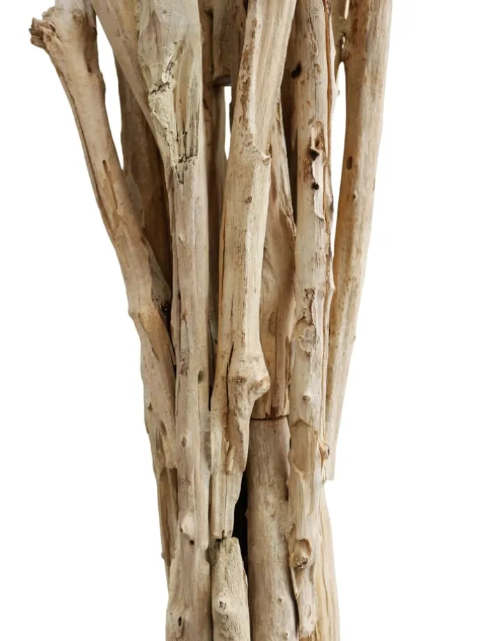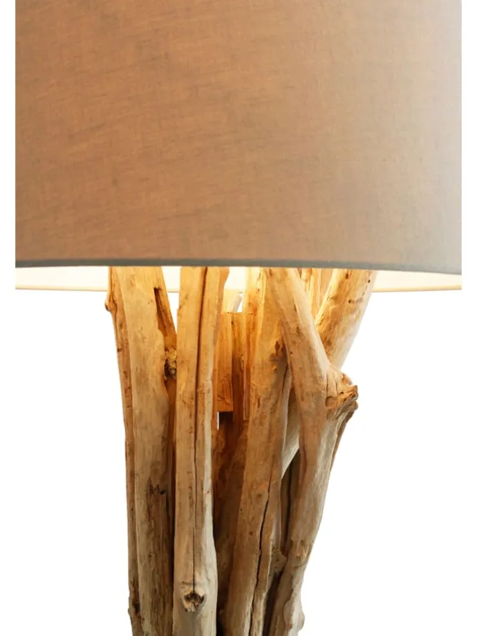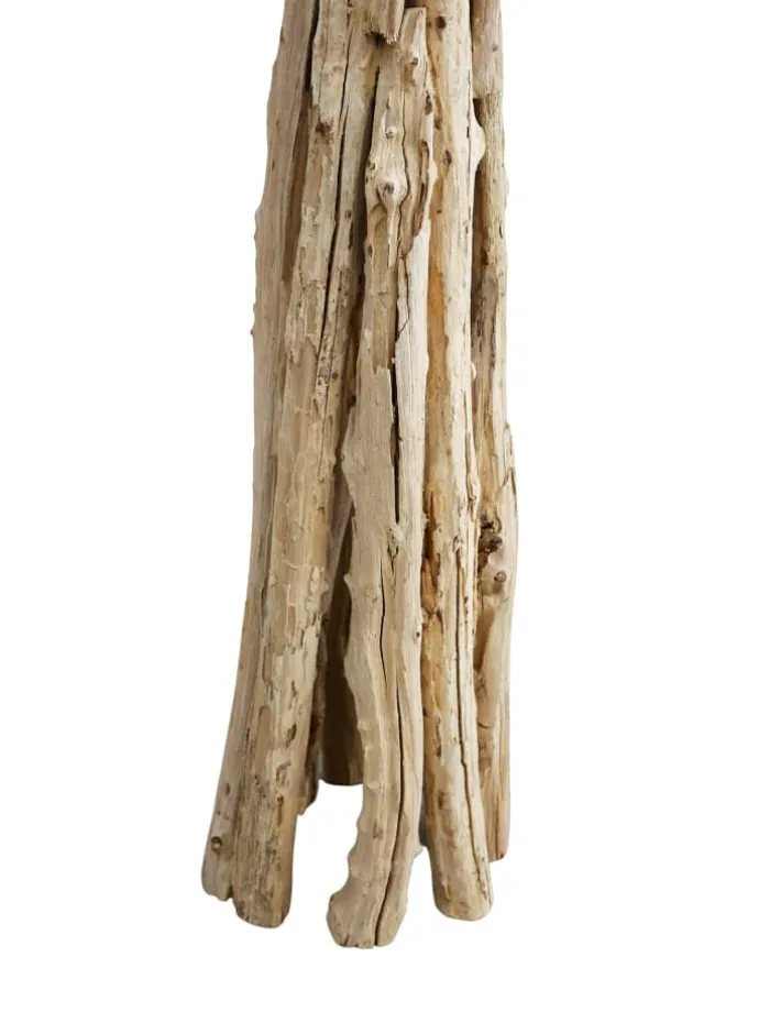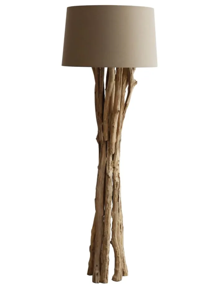 SalesFever Stehleuchte – Handgefertigt aus weißem Treibholz mit Leinenschirm