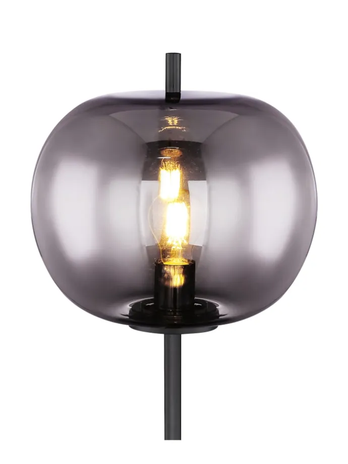 Stehleuchte Metall schwarz, Glas, Fußtrittschalter im Kabel, ø: 300mm, H: 1600mm, Kabellänge 1800mm, exkl. 1x E27 60W 230V