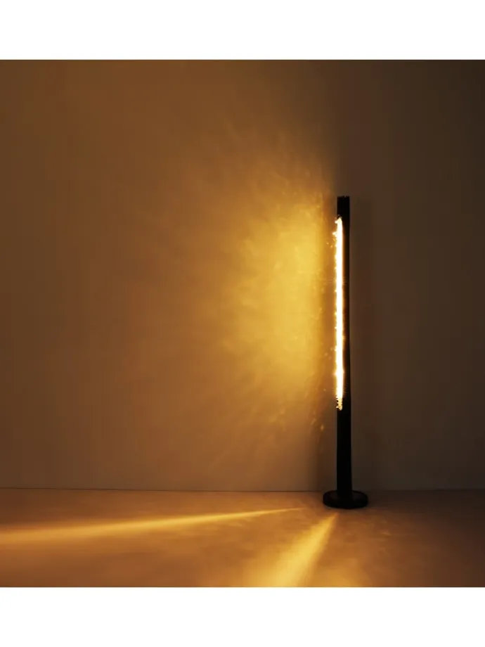 Stehleuchte Metall schwarz matt, Holz schwarz matt, Acrylkristalle klar, dimmbar, Dimmer, burned wood, ø: 230mm, H: 1510mm, Kabellänge 2000mm, inkl. LED 20W 230V, 300-2100lm Source, 98-980lm Output, 3000K