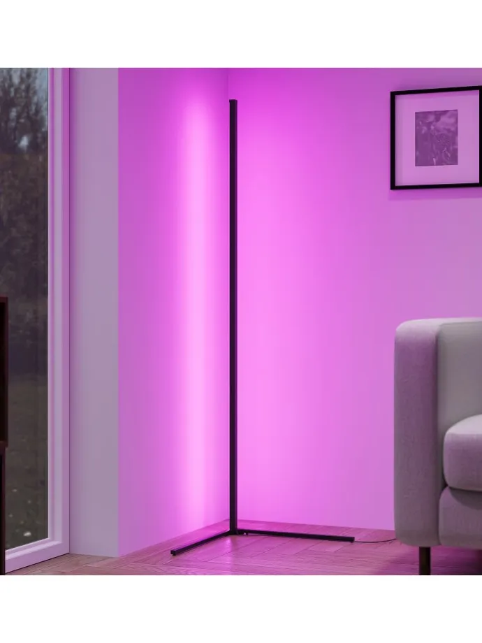 Feel the light! Die Stehleuchte LEVEL bietet eine Vielzahl praktischer Funktionen, die das Film- sowie Spielerlebnis auf eine ganz neue Ebene heben und die Zuschauer tiefer in die fiktive Welt eintauchen lassen. Die Dynamic Light Funktion schafft eine faszinierende Atmosphäre mit vorprogrammierten, dynamischen Lichtszenarien, die ergänzend zum mehr- oder einfarbigen Stimmungslicht faszinierende Lichteffekte erstrahlen lässt. Darüber hinaus ist die Leuchte mit der Sound Control Funktion ausgestattet. Mittels eines eingebauten Mikrofons reagieren die RGB-LEDs in Echtzeit auf Umgebungsgeräusche und verwandeln Musik, Filme und Gaming in mitreißende, rhythmisch angepasste Lichtspiele. Die im Lieferumfang enthaltene Fernbedienung ermöglicht es, die Helligkeit sowie den RGB-Farbwechsler den eigenen Vorlieben anzupassen. Ob im Wohnzimmer oder im Gaming-Bereich platziert, wertet die LEVEL Ihr Gaming- oder Filmerlebnis auf unvergleichliche Weise auf. Im ausgeschalteten Zustand präsentiert sich die Stehleuchte in schlichter Eleganz und lässt sich in ihrem schwarzen Design vielseitig kombinieren. Darüber hinaus verfügt die Leuchte über eine moderne LED Technologie, die sich durch eine hohe Lichtqualität und Energieeffizienz auszeichnet. Im Vergleich zu herkömmlichen Halogen Leuchtmitteln lassen sich bis zu 80% der Energiekosten sparen. Zusätzlich haben LED Lichtquellen eine lange Lebensdauer, produzieren weniger Wärme und schonen die Umwelt.