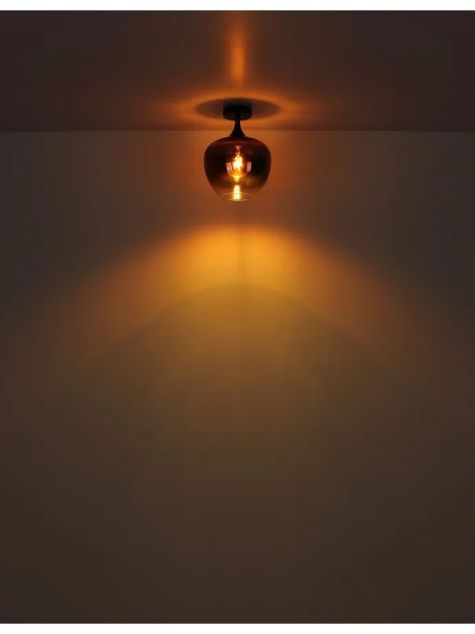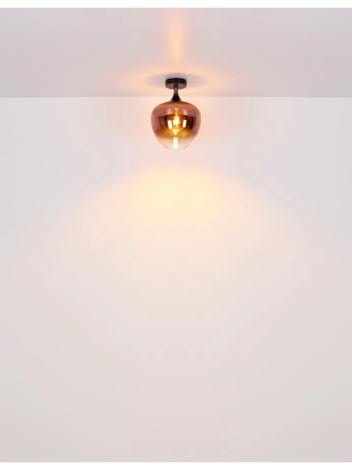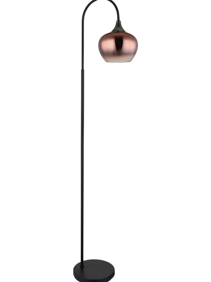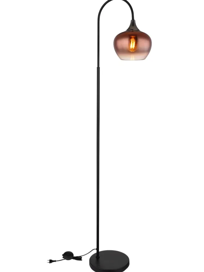 Stehleuchte Metall schwarz matt, Metall schwarz-chrom, Glas kupferfarben, klar verlaufend, Kabel Textil Schwarz, Fußtrittschalter im Kabel, LxBxH: 390x250x1500mm, Kabellänge 1800mm, exkl. 1x E27 40W 230V