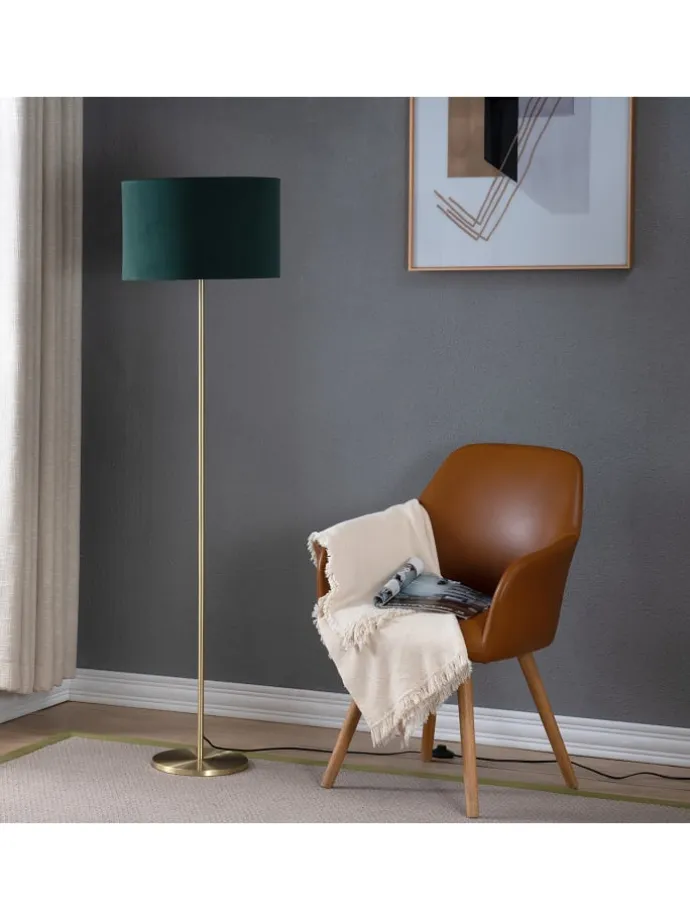 Diese einflammige Stehleuchte sorgt durch ihren eleganten schwarzen Samtschirm für besonders weiche Lichtakzente und eine stimmungsvolle Atmosphäre in Ihrem Zuhause. Die schlanke Metallsäule garantiert einen stabilen Stand und macht die Leuchte zur idealen Lichtquelle für den Wohn- oder Schlafbereich. Dank des hochwertigen Textilbezugs wird das Licht indirekt und angenehm im Raum verteilt, perfekt für entspannte Lesestunden. Ein dekoratives Beleuchtungselement, das moderne Eleganz und Wohnlichkeit stilsicher vereint.