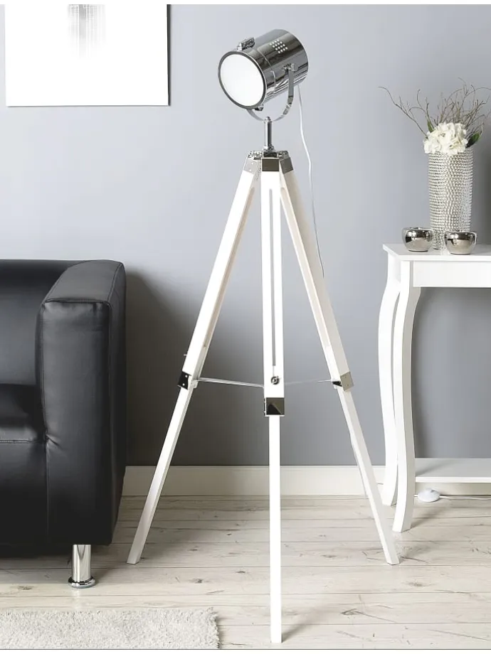 Designer Lampe in Weiß. Diese moderne Stehlampe ist ein absolutes Highlight in Ihrer Wohnung. Dieses Modell können Sie als herkömmliche Beleuchtung oder als Spotlampe verwenden um etwas Besonderes hervorzuheben. Dank den hochwertigen Materialien hat die Leuchte einen sehr stabilen Stand und ist sehr langlebig. Die Höhe lässt sich bequem und einfach einstellen und der Lampenkopf ist auch nochmals separat verstellbar.