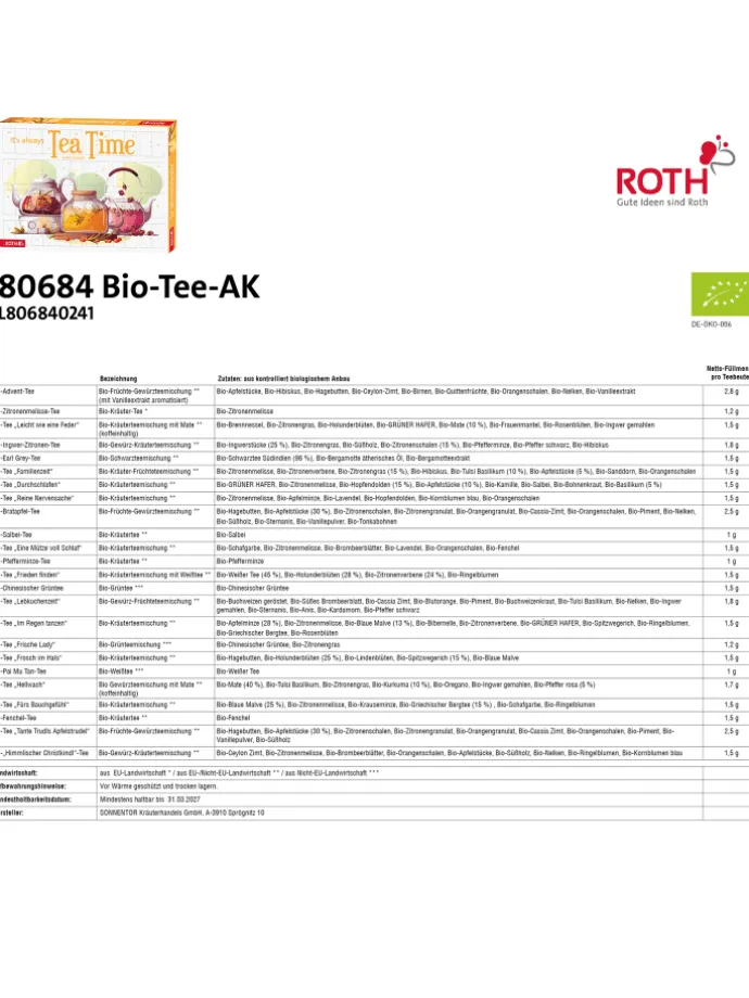 Mit den 24 verschiedenen Bio-Teemischungen aus Früchten, Kräutern und Gewürzen wird es nie langweilig.