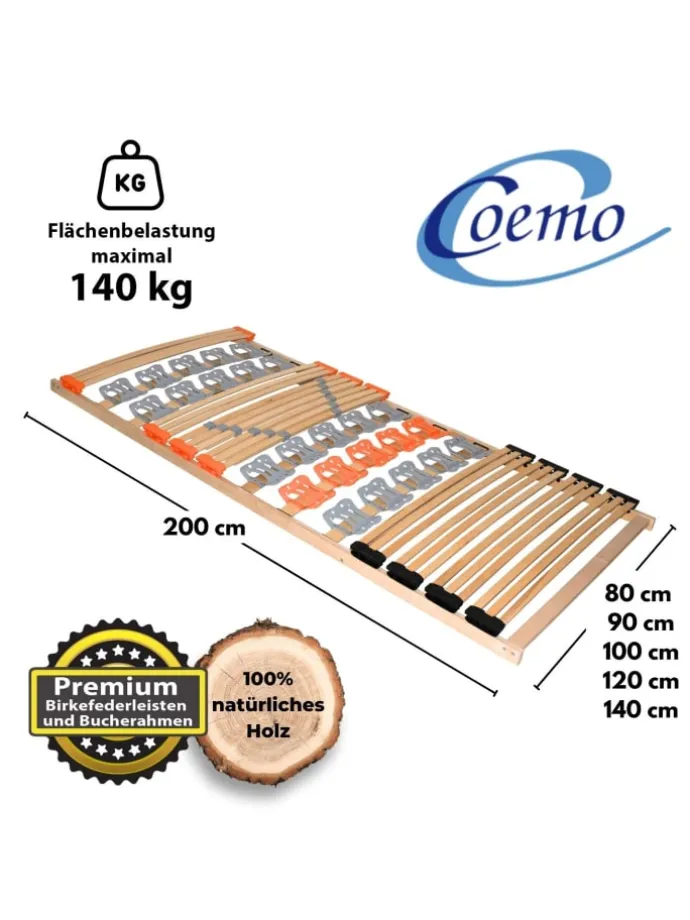 Bestellen Sie noch heute und erleben Sie den Komfort, den der Coemo KombiFlex Federleisten-Tellerlattenrost für Ihre Nachtruhe bieten kann. Vertrauen Sie auf Qualität, die Sie fühlen können!