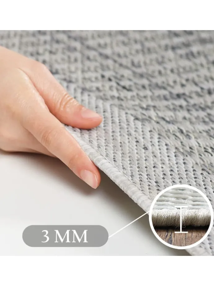 • Technische Daten: 100 % PP. Heatset Friese, Florhöhe 3 mm, 76.800 Points, 1100 gr (±%5)M2, Rücken aus Polypropylen