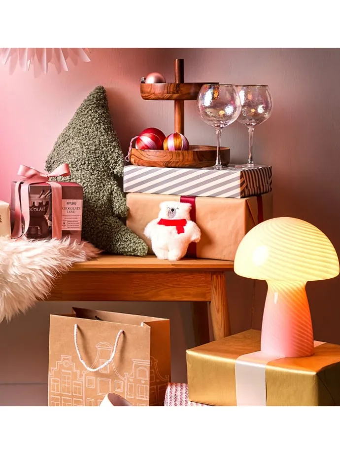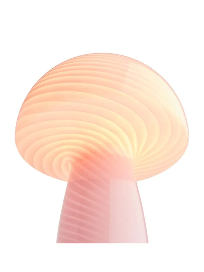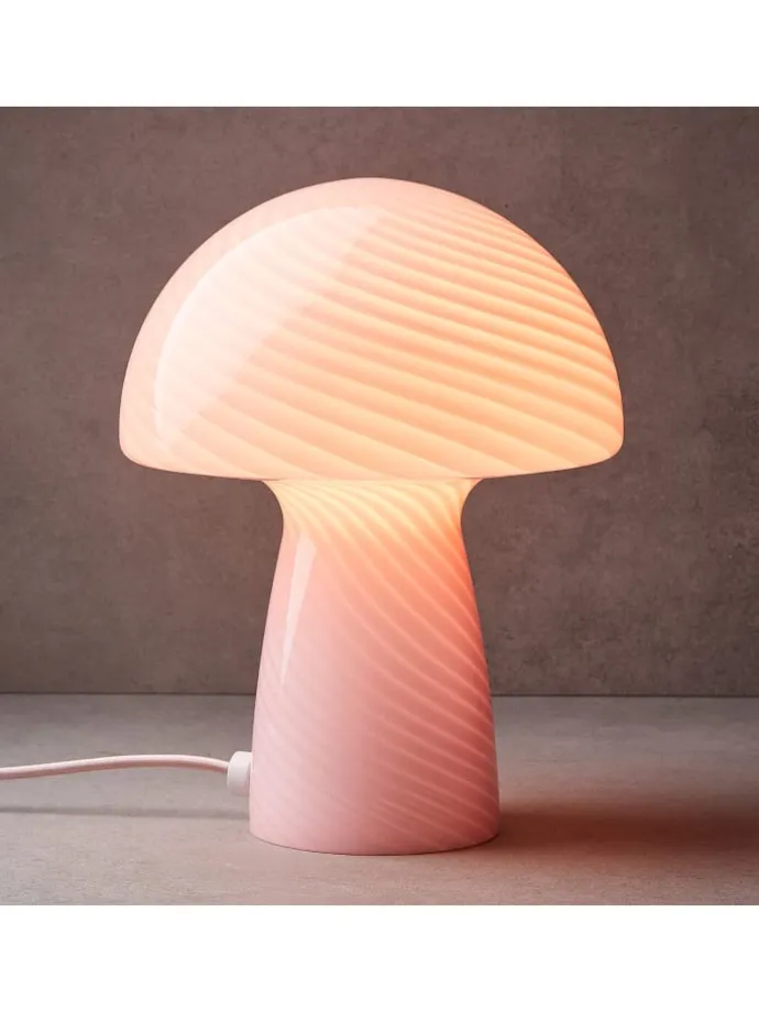 – Was macht diese Lampe so besonders? Es ist die Kombination aus Form und Funktion, die die Tischleuchte Fungi Town so einzigartig macht. Das mundgeblasene Glas verleiht ihr eine organische, fast schon lebendige Qualität, während das wellenförmige Muster fü