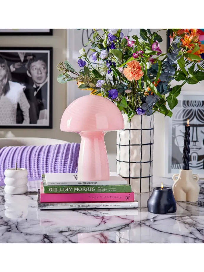 Was macht diese Lampe so besonders? Es ist die Kombination aus Form und Funktion, die die Tischleuchte Fungi Town so einzigartig macht. Das mundgeblasene Glas verleiht ihr eine organische, fast schon lebendige Qualität, während das wellenförmige Muster für faszinierende Lichtspiele sorgt. Und dank des praktischen Kabelschalters ist sie kinderleicht zu bedienen. Ob modern, Boho oder skandinavisch – die Tischleuchte Fungi Town ist ein echter Allrounder. Ihr verspieltes Design fügt sich nahtlos in verschiedene Einrichtungsstile ein und setzt dabei einen charmanten Akzent. Mit einer Höhe von etwa 30 cm und einem Durchmesser von ca. 25 cm (aus Beschreibungstext) ist sie kompakt genug, um auf kleinen Tischen oder Regalen Platz zu finden, und gleichzeitig groß genug, um als dekoratives Element aufzufallen. Der Lampenschirm und der Sockel sind nahtlos aus einem Stück gefertigt, was der Leuchte eine moderne und stilvolle Optik verleiht. Die Leuchte verwendet Standard-E27-Glühbirnen, die leicht austauschbar sind, und das Textilkabel mit 130 cm Länge (aus altem BP) und Kippschalter sorgt für einfache Bedienung. Ideal für Wohnzimmer, Büro, Schlafzimmer und Flur, platziert auf Nachttischen, Schreibtischen, Kommoden oder Sideboards.