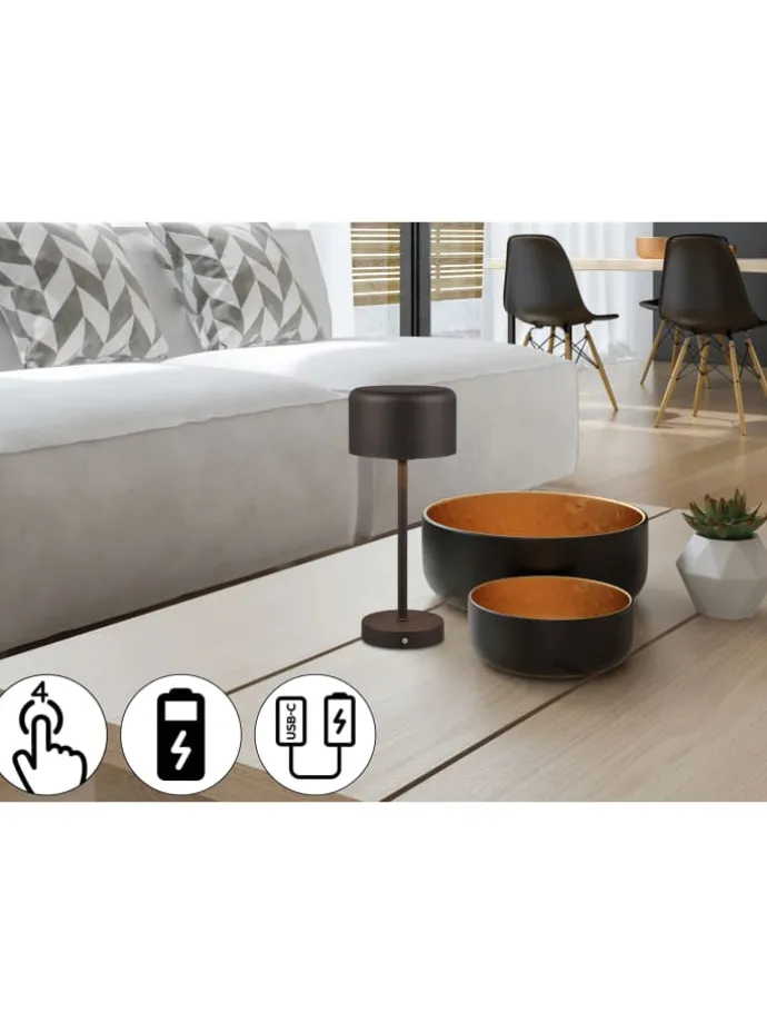 Die mobile Tischleuchte JEFF ist ein praktischer Begleiter in den eigenen vier Wänden. Der Akku der Leuchte, welcher problemlos über den USB-C Anschluss geladen werden kann, ermöglicht die flexible Platzierung ohne Kabel überall, wo eine behagliche Lichtstimmung benötigt wird. Der 4-fach Touch der Leuchte passt die Lichtintensität in 3 Helligkeitsstufen individuell Ihren Bedürfnissen an und bietet vielseitige Beleuchtungslösungen für den modernen Alltag. Das Design in Nickel mattem Metall ist modern und wertet Ihren Innenbereich stilvoll auf. Darüber hinaus verfügt die Leuchte über eine moderne LED Technologie, die sich durch eine hohe Lichtqualität und Energieeffizienz auszeichnet. Im Vergleich zu herkömmlichen Halogen Leuchtmitteln lassen sich bis zu 80% der Energiekosten sparen. Zusätzlich haben LED Lichtquellen eine lange Lebensdauer, produzieren weniger Wärme und schonen die Umwelt.