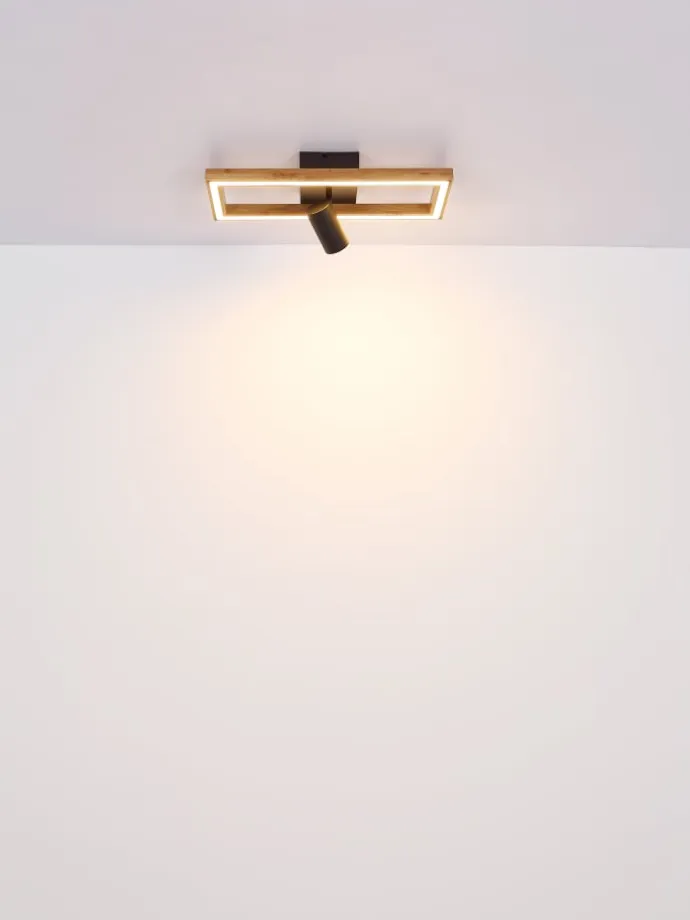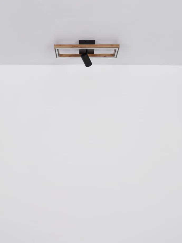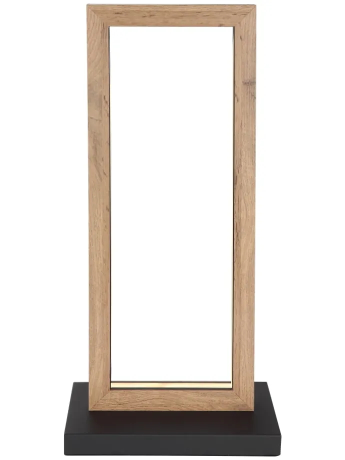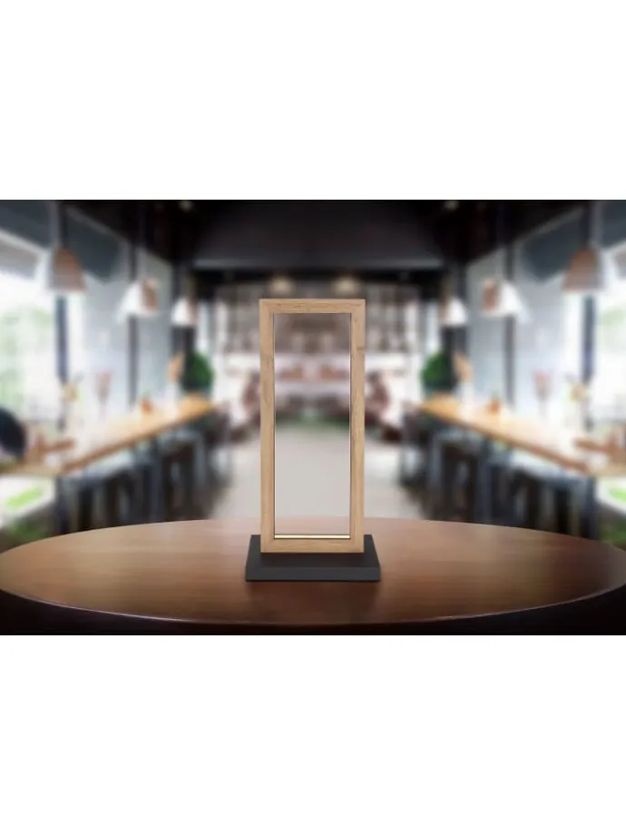 Tischleuchte Metall schwarz matt, MDF holzoptik dunkel, Kunststoff opal, Kabel PVC Schwarz, Wippschalter am Kabel, LxBxH: 250x150x525mm, Kabellänge 1500mm, inkl. LED 12W 230V, 1380lm Source, 450lm Output, 3000K
