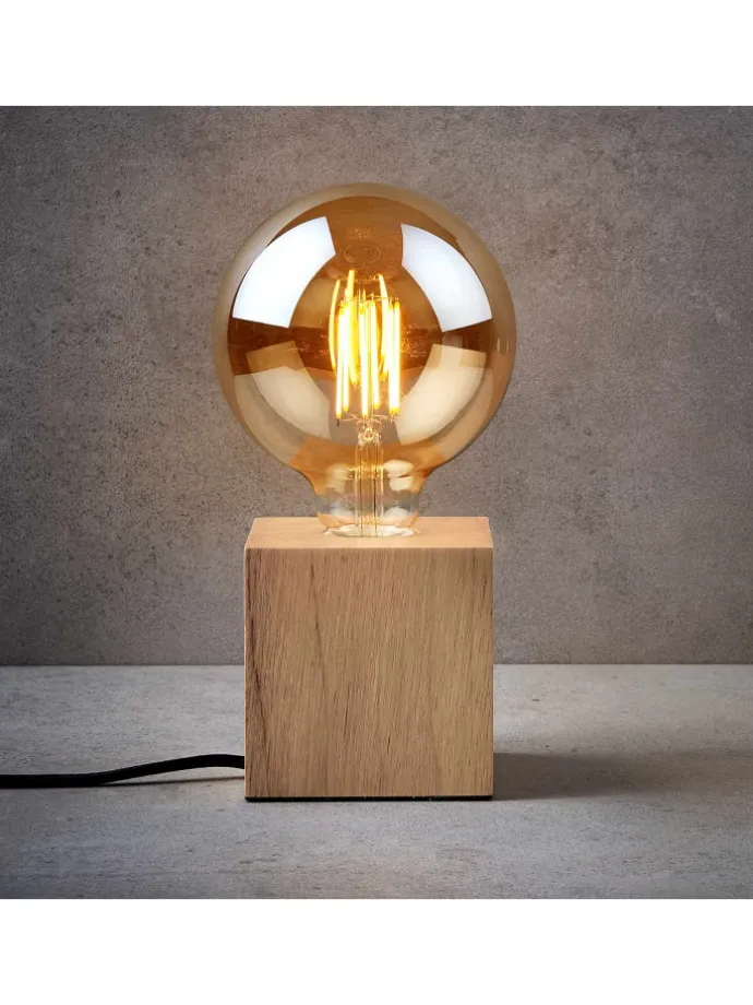 Stil hat, wer Stilo hat: Die puristische Tischleuchte mit Holzfuß lässt trendige Glühbirnen (nicht im Lieferumfang enthalten) ohne jeden Schnickschnack strahlen. Mit Kippschalter. Weitere Varianten erhältlich.