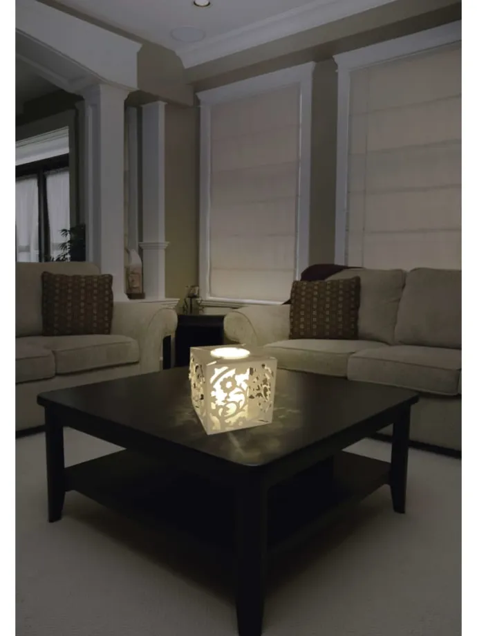 Tischleuchte „WHITE LINE“ in weiß – (L)16.5 cm x (B)16.5 cm x (H)18 cm