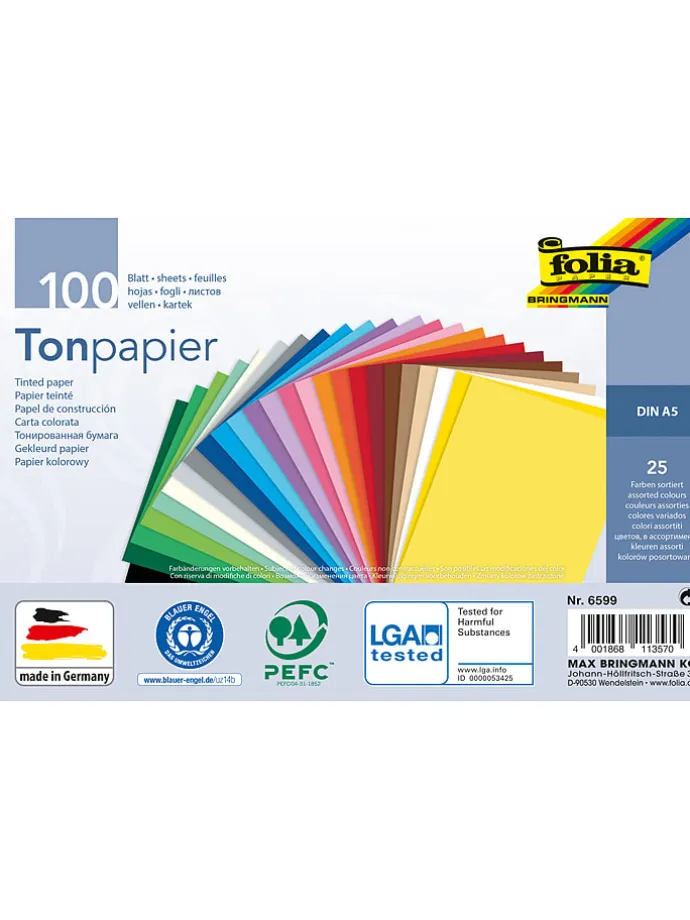 – Inhalt: 100 Blatt Tonpapier in 25 Farben