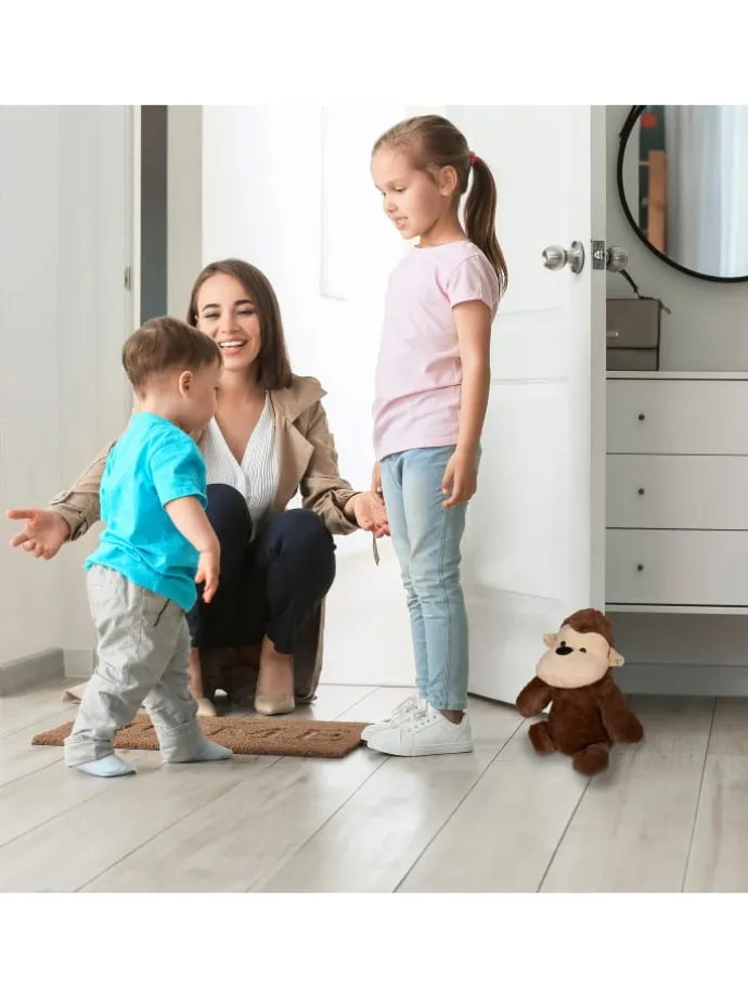 Dieser dekorative Türaufhalter in Form eines niedlichen Affens ist ideal geeignet, um unbeabsichtigtes Anschlagen oder Zuknallen von Türen zu verhindern. Durch die Schwere des mit Sand gefüllten Türpuffers steht dieser stabil und sicher auf dem Boden. Der Türsack aus weichem Stoff beugt Beschädigungen an Türen und Möbeln vor und kann jederzeit flexibel neu platziert werden. Dank seiner Höhe ist der Bodenstopper auch für höher gelegene Türen wie die Balkon- oder Terrassentür verwendbar.