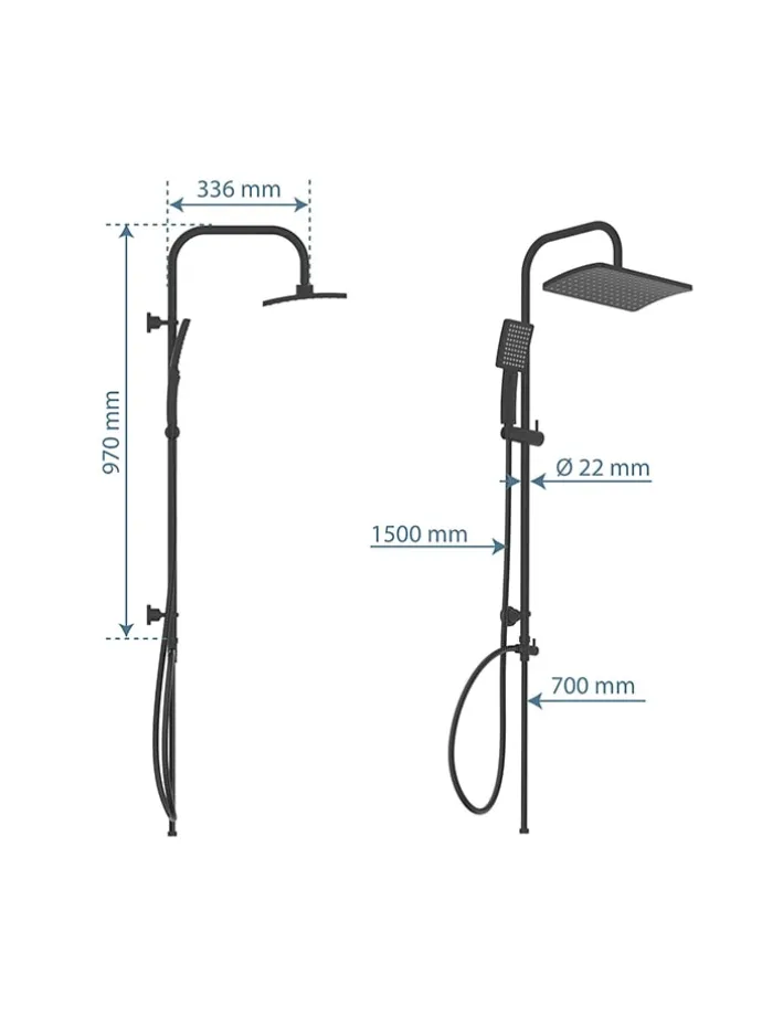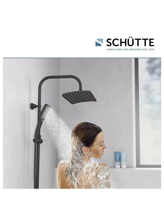 – Inhalt: Überkopfbrause, Handbrause, Brauseschlauch, Wandhalterung mit höhenverstellbarer Brausestange