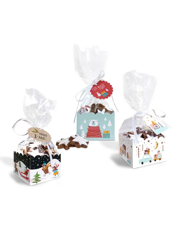 – Inhalt: 6 Geschenk-Bodenbeutel, 6 Schachteln, 6 Anhänger sortiert in verschiedenen Motiven, 100 Klebepads, Satinband (2 m x 5 mm) und Aufbauanleitung