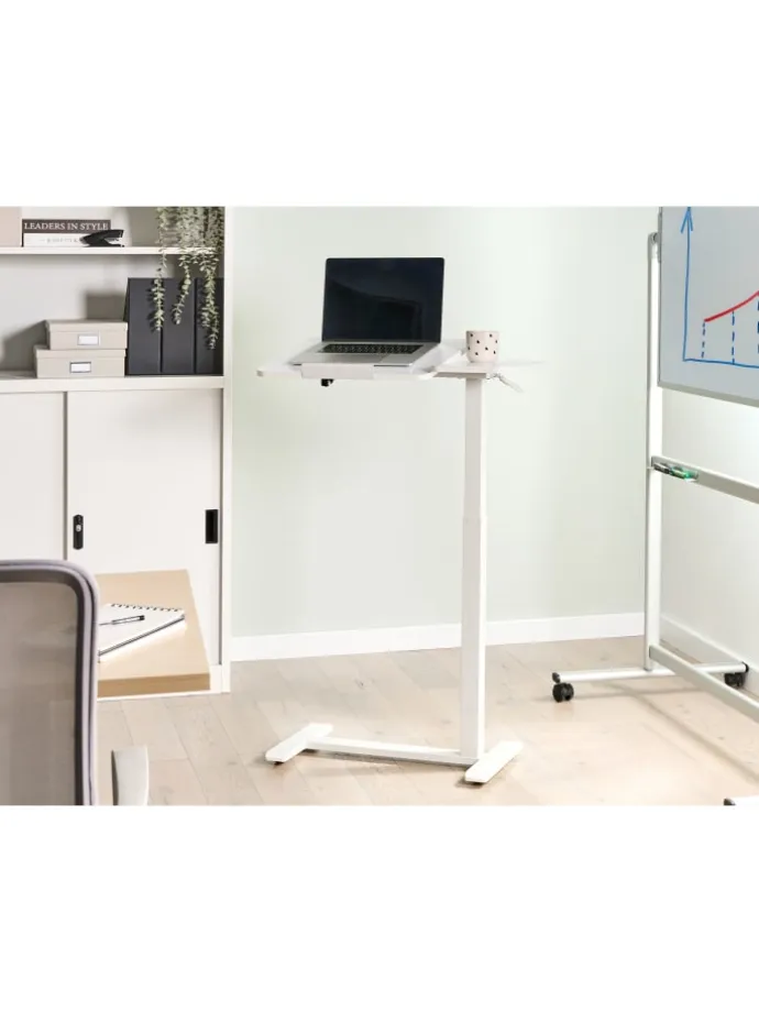 Manuell höhenverstellbarer Laptophalter. Genießen Sie Flexibilität und Stil mit diesem eleganten Stehtisch, der Arbeit und Wohlbefinden vereint. Die höhenverstellbare Funktion ermöglicht es Ihnen, Ihren Arbeitsplatz individuell anzupassen, während das robuste, minimalistische Design aus hochwertigen Materialien perfekt in jedes moderne Büro passt. Dank seiner kompakten Größe lässt er sich leicht bewegen, sodass Sie nicht an einen festen Platz gebunden sind. Ideal, um eine dynamische und komfortable Arbeitsumgebung im Homeoffice zu schaffen.