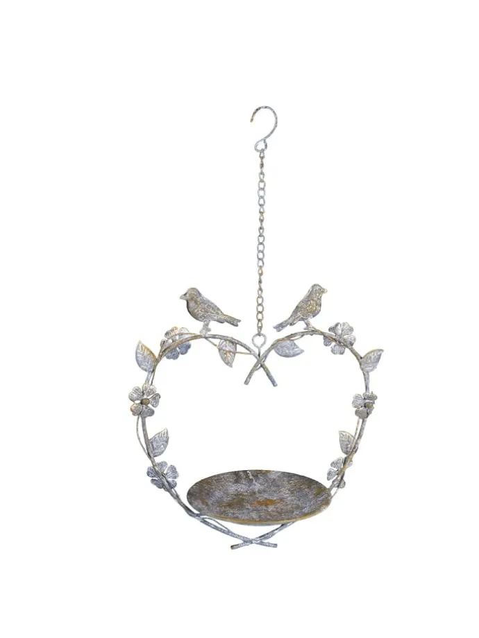 Unser liebevoll gefertigtes Vogelbad aus Metall in schöner Herzform wird mit Hilfe einer 20 cm langen Kette aufgehängt, schützt so vor ungebetenen Gästen und zaubert ein romantisches Ambiente in Ihren Garten.