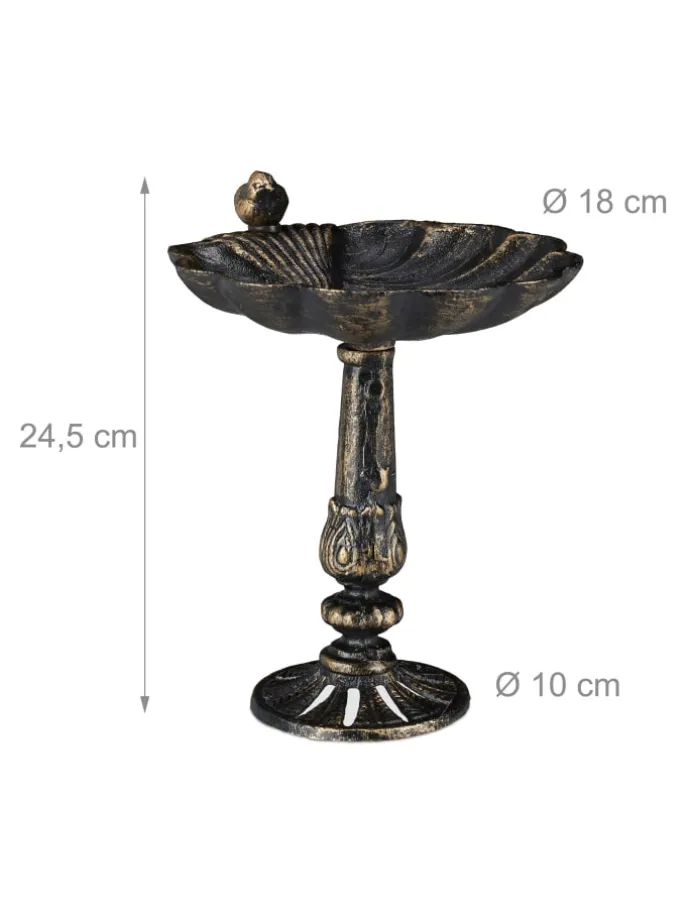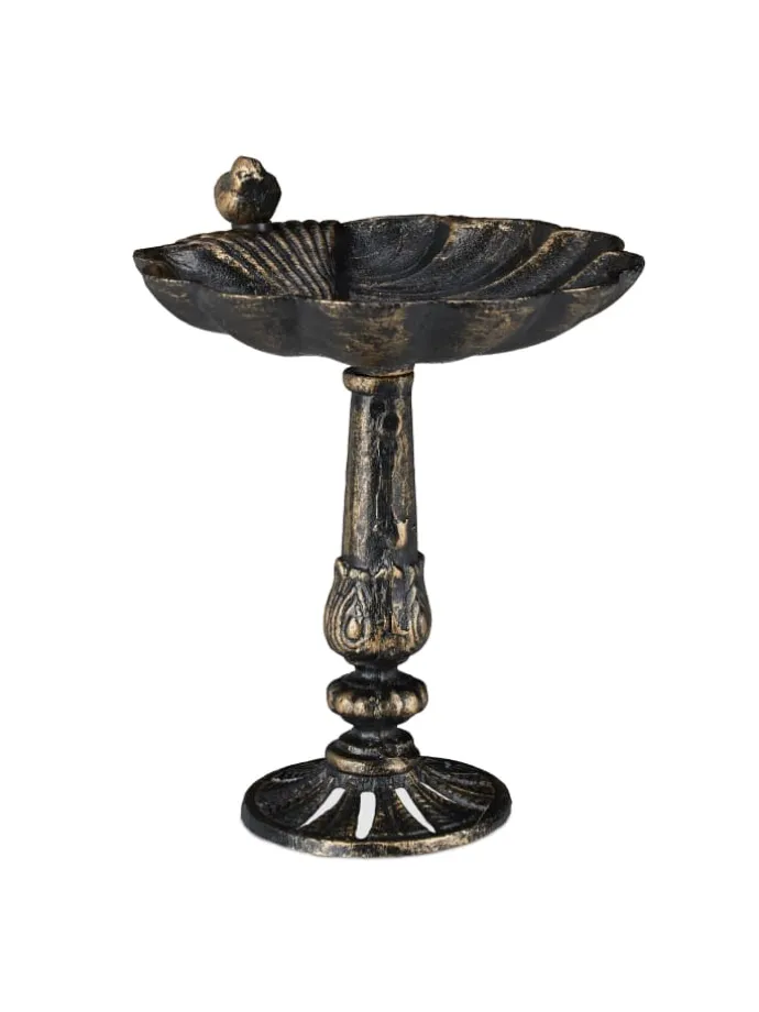 Erfreuen Sie sich am Anblick von Wildvögeln, die diese Vogeltränke in Ihrem Garten besuchen. Auch ohne kleine Piepmätze, die sich am Vogelbecken mit Wasser versorgen, ist die Wasserschale ein Deko-Highlight. Der Ständer im Vintage Design verfügt über eine Wassertränke in Form einer Muschel. Die wetterfeste Vogeltrinkschale kann das ganze Jahr über draußen gelassen werden. Entscheiden Sie selbst, ob Sie Ihren tierischen Gästen Wasser oder Erdnüsse und andere Leckereien anbieten wollen.