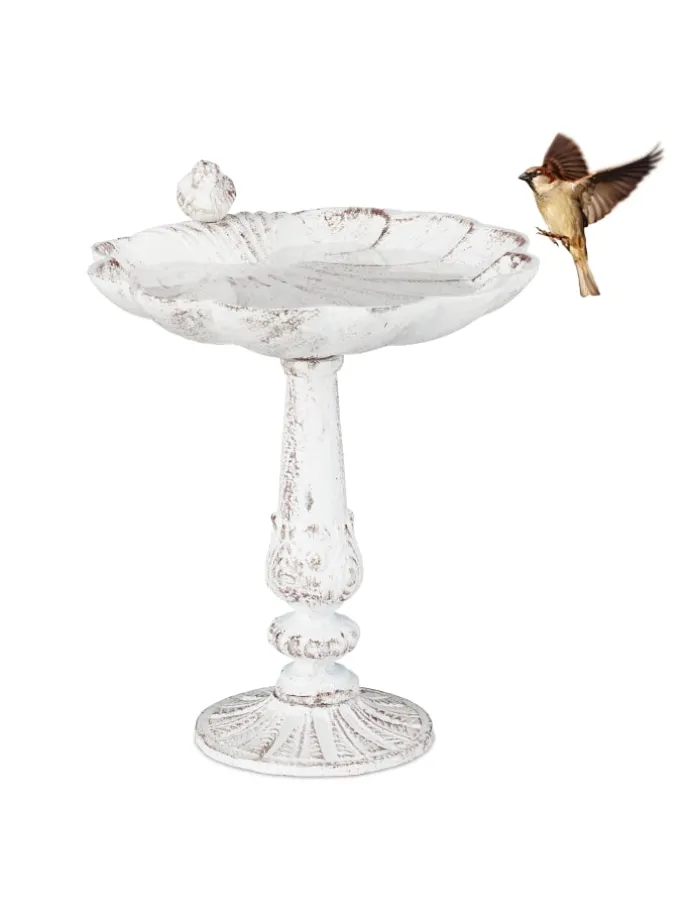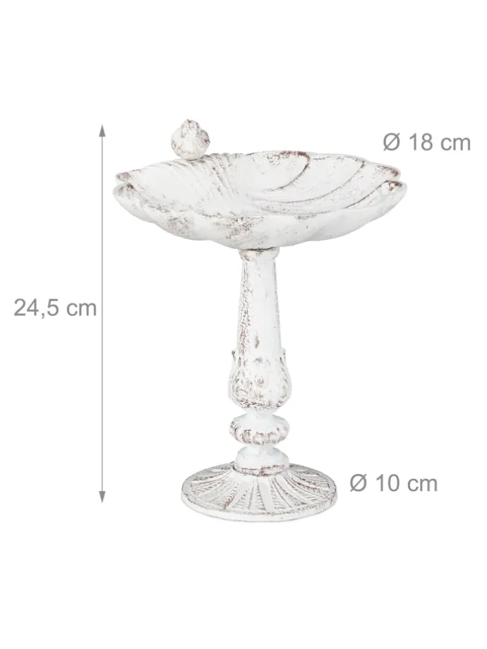 Erfreuen Sie sich am Anblick von Wildvögeln, die diese Vogeltränke in Ihrem Garten besuchen. Auch ohne kleine Piepmätze, die sich am Vogelbecken mit Wasser versorgen, ist die Wasserschale ein Deko-Highlight. Der Ständer im Vintage Design verfügt über eine Wassertränke in Form einer Muschel. Die wetterfeste Vogeltrinkschale kann das ganze Jahr über draußen gelassen werden. Entscheiden Sie selbst, ob Sie Ihren tierischen Gästen Wasser oder Erdnüsse und andere Leckereien anbieten wollen.