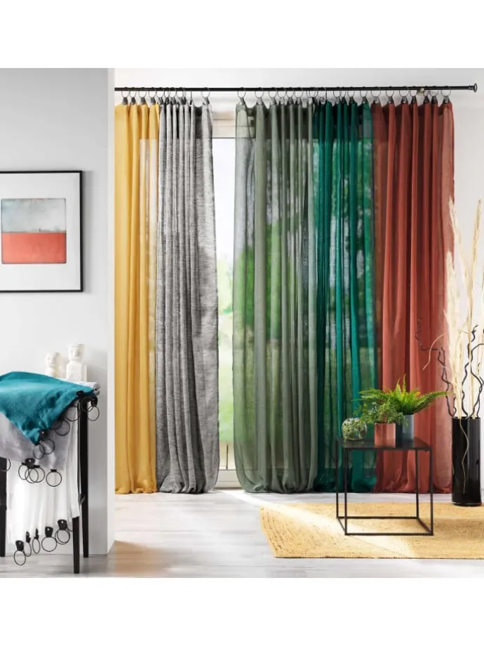 Ein im Fenster aufgehängter LINKA-Netzvorhang macht Ihr Interieur viel angenehmer, und dies ist nicht der einzige Vorteil dieses einzigartigen Accessoires. Sehr leichtes Material lässt die Sonnenstrahlen ein, minimiert jedoch die Menge an äußeren Reizen, die Sie von der Straße aus erreichen können.