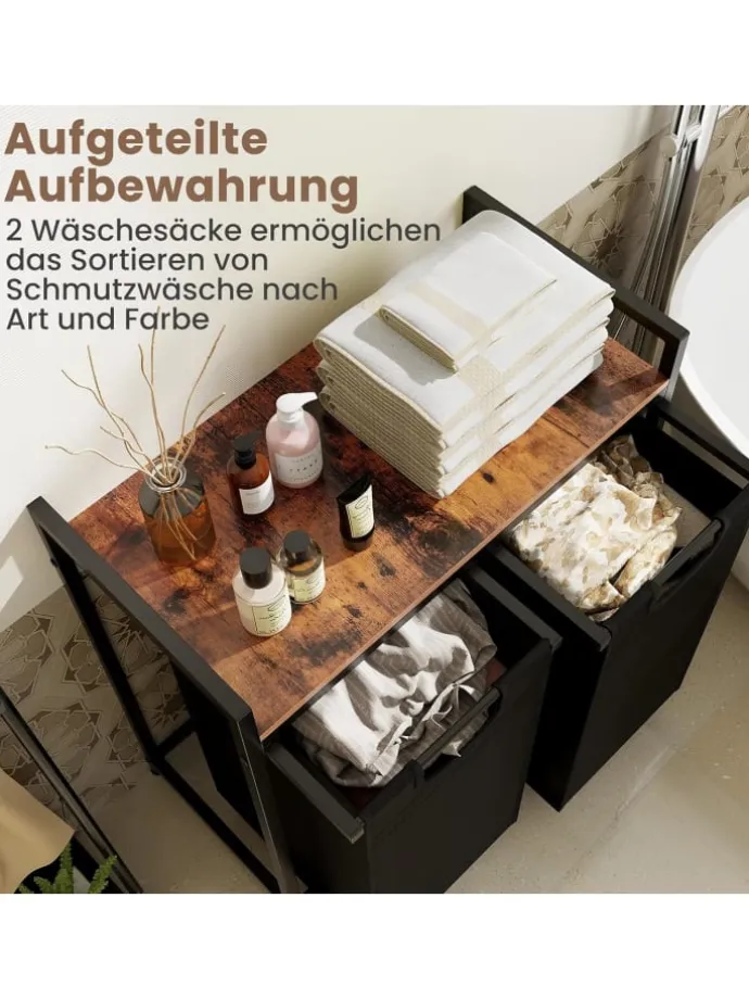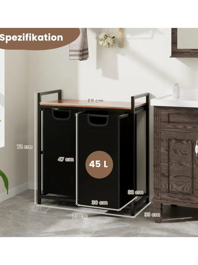 Ziehen Sie die 2 Taschen reibungslos heraus und verstecken Sie Ihre schmutzige Wäsche