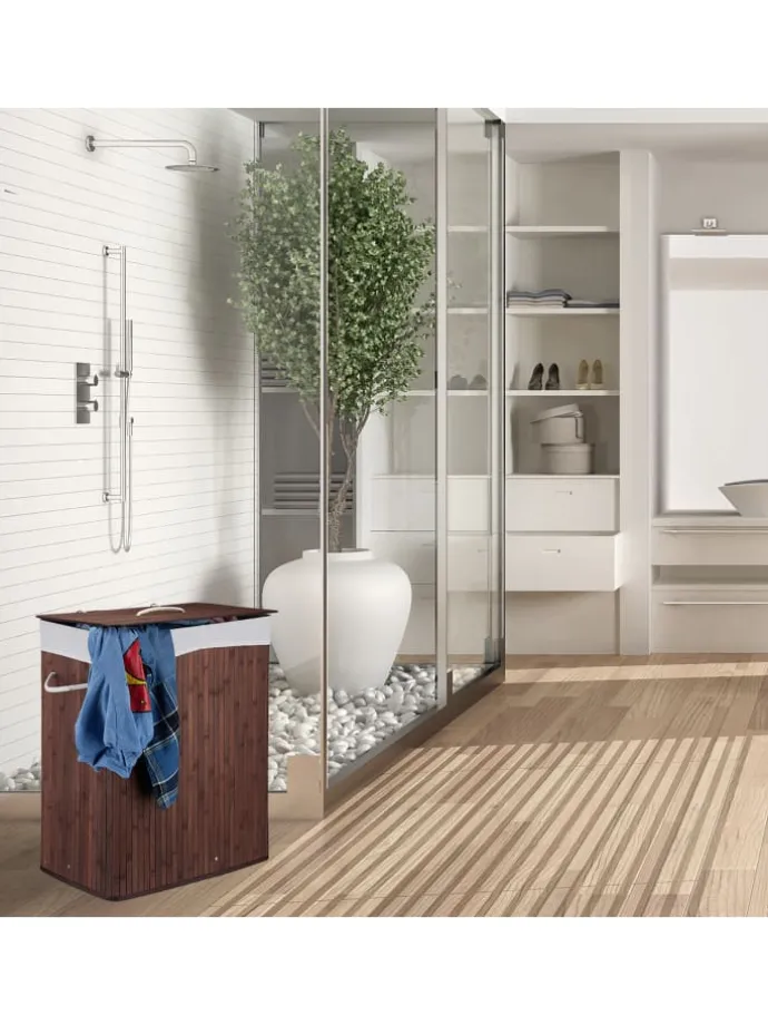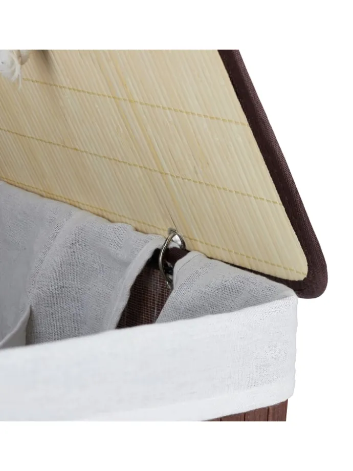 Mit diesem faltbaren Wäschekorb aus Bambus holen Sie sich ein praktisches und zugleich dekoratives Accessoire in Ihr Zuhause. Bambus als Material zeichnet sich neben seiner ansprechenden Optik, vor allem durch pflegeleichte, widerstandsfähige und feuchtigkeitsabweisende Eigenschaften aus. Der waschbare Wäschesack im Inneren trennt Ihre Kleidung ordnungsgemäß und dank des integrierten Deckels verbreiten sich keine unliebsamen Gerüche.